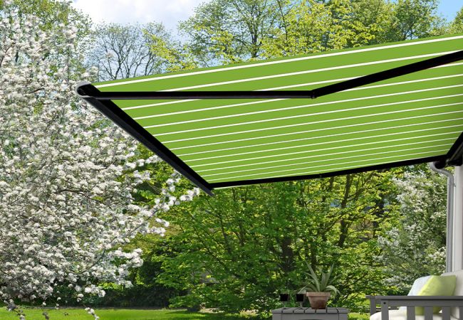 • Horizontal an einer Wand zum Schutz von oben: Gelenkarm-, Pergola- oder Korbmarkise