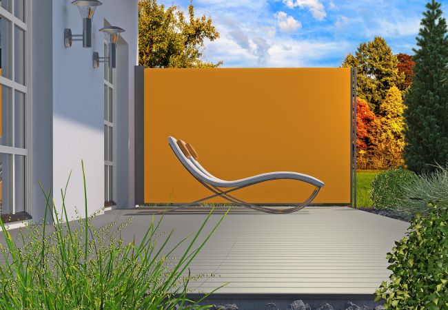 • Vertikal an einer Wand oder einem Pfosten zum seitlichen Schutz: Sondermarkise